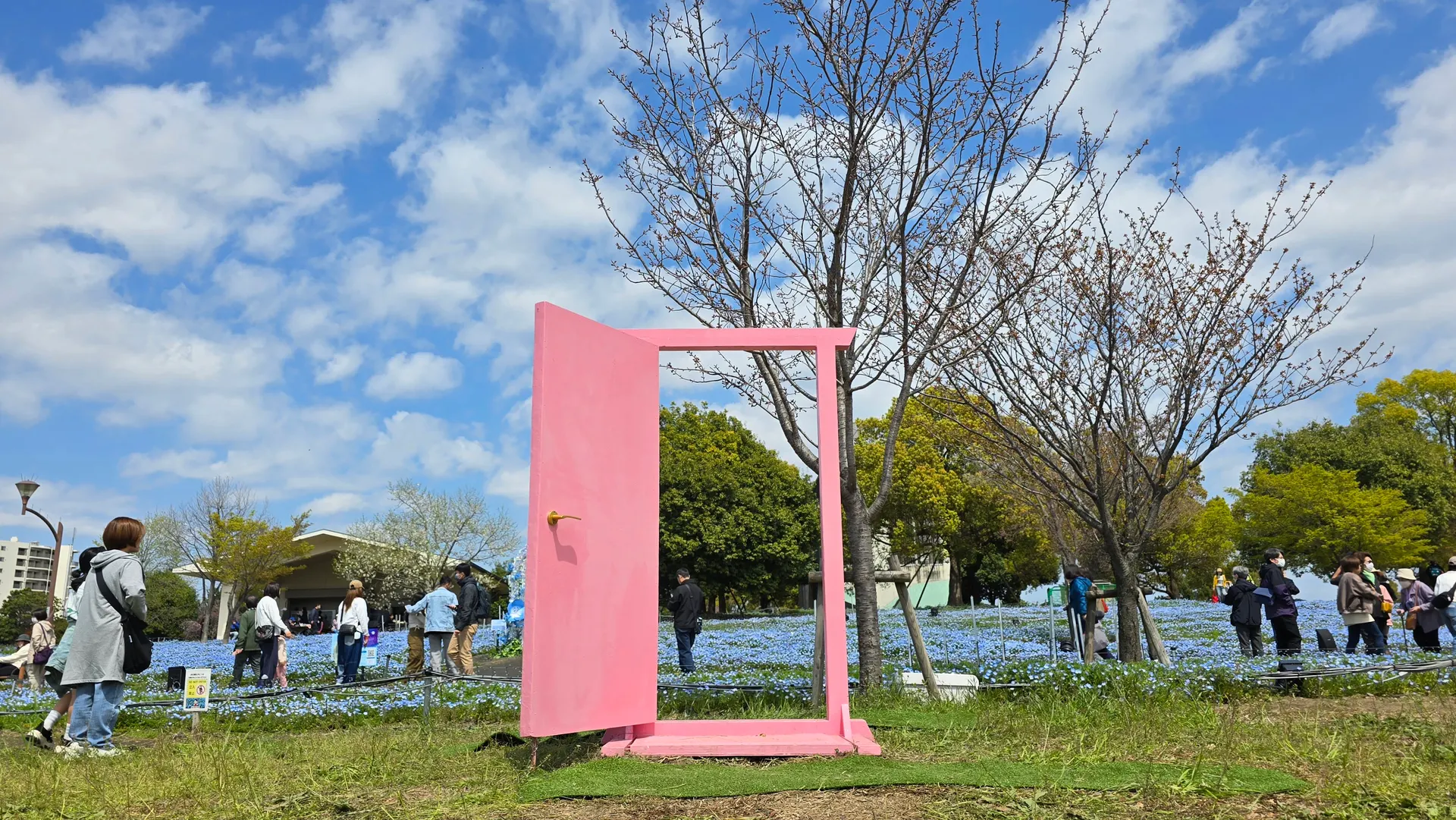 在东京都的舍人公园正在举办粉蝶花的灯光秀,场景非常梦幻。