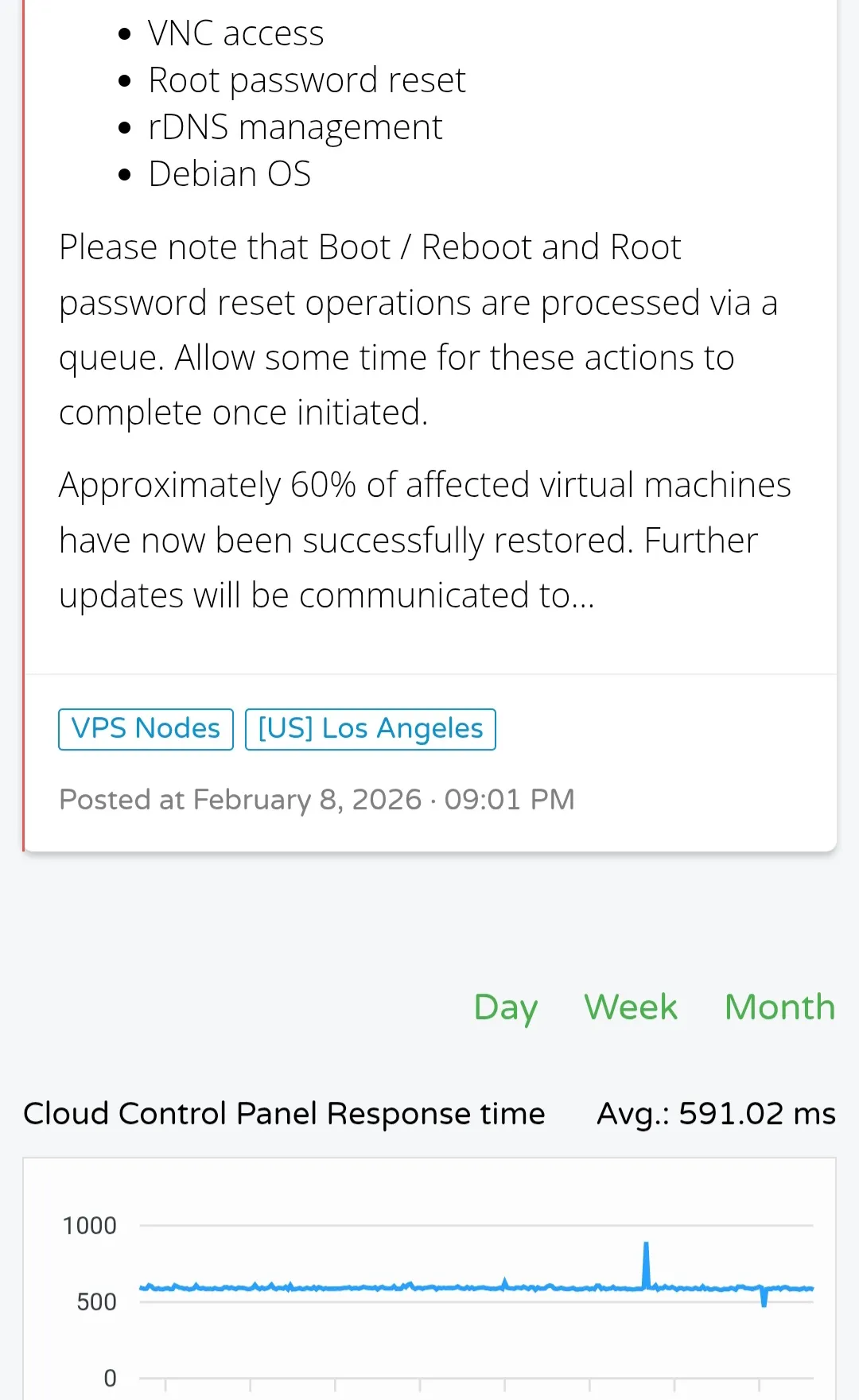 他们的回复是:虽然平时有“逾期 14 天就删机器”的规定,但因为目前服务出现了故障/中断,在修复好之前,你的服务器是安全的,不会因为欠费而被系统自动删除。