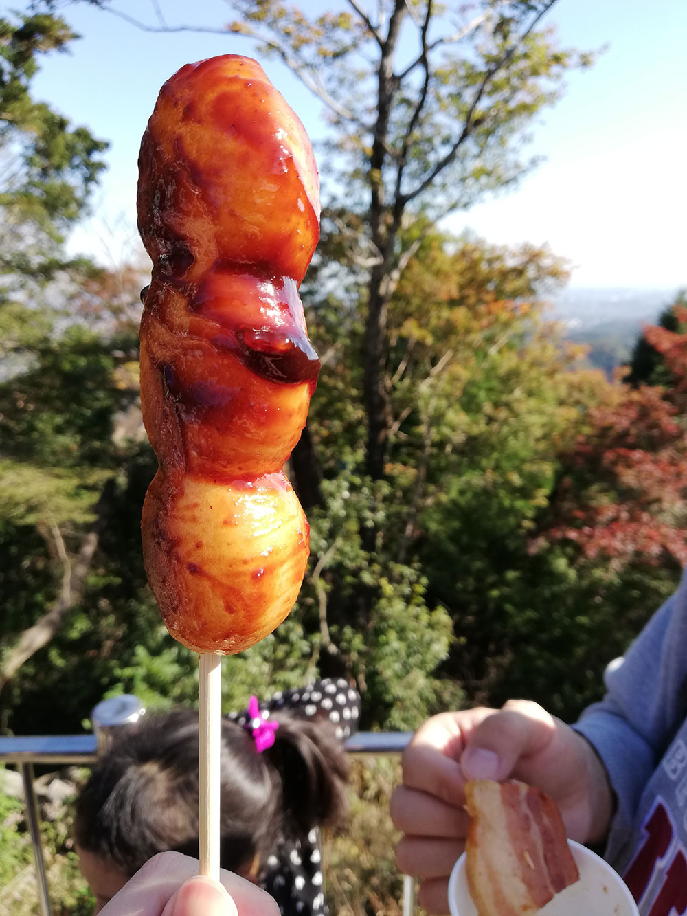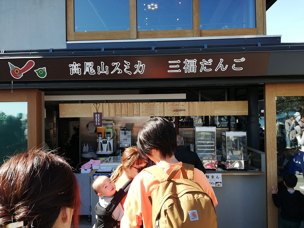 途中会有很多卖三福团子的店铺,应该是高尾山的特产,味道还不错,我个人非常喜欢日本这种糯糯的团子口感。不过个人不推荐在这个时候买来吃,因为排队太太太长了……后面山上还会有很多店,而且排队不会那么长。