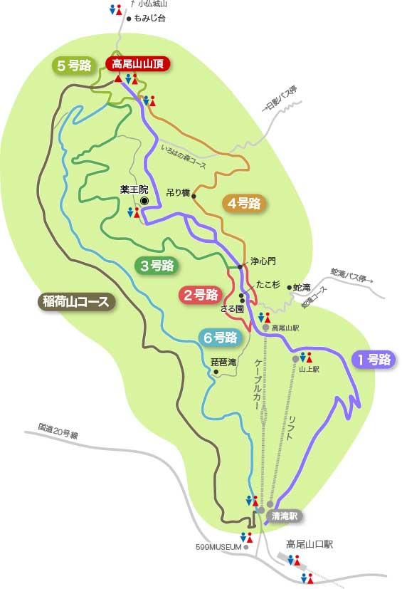 从高尾山口车站稍微走一段路就会来到高尾山缆车的站,如果对自己的体力没信心的话可以乘坐缆车直接到达半山腰。