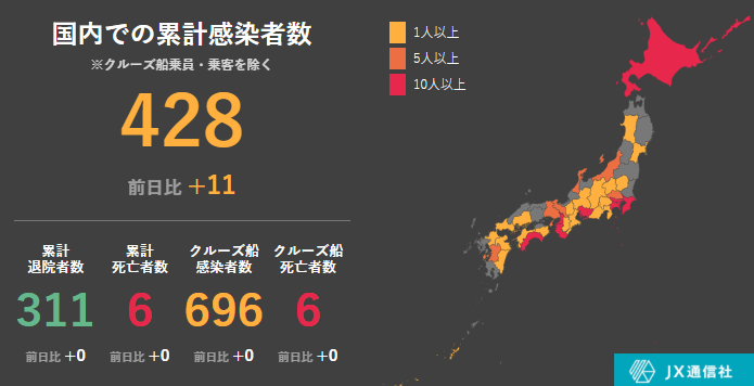 上图是截至我写这篇文章的时候日本的感染情况。
