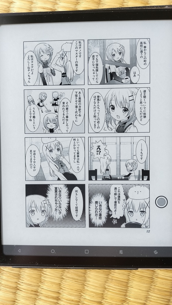 黑白画面的情况下感觉非常不错,但是像《点兔》这种彩图略多的漫画,在彩图部分可以看到明显的色阶过度不平滑。