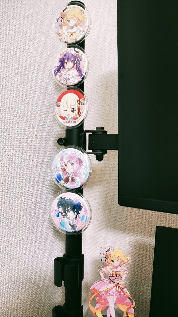 最近准备把这根显示器支架柱子贴满吧唧,哈哈。