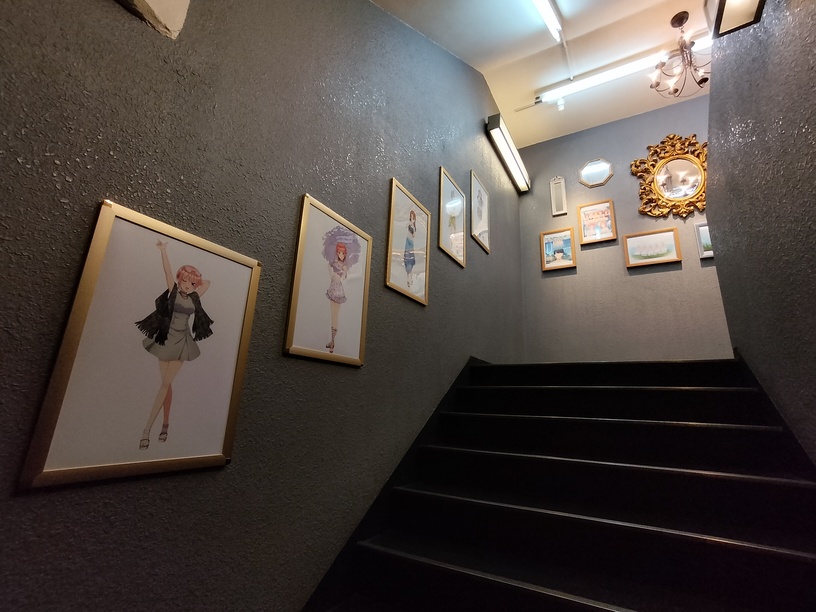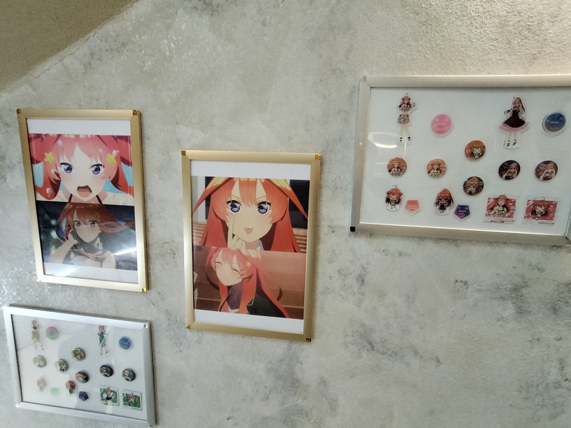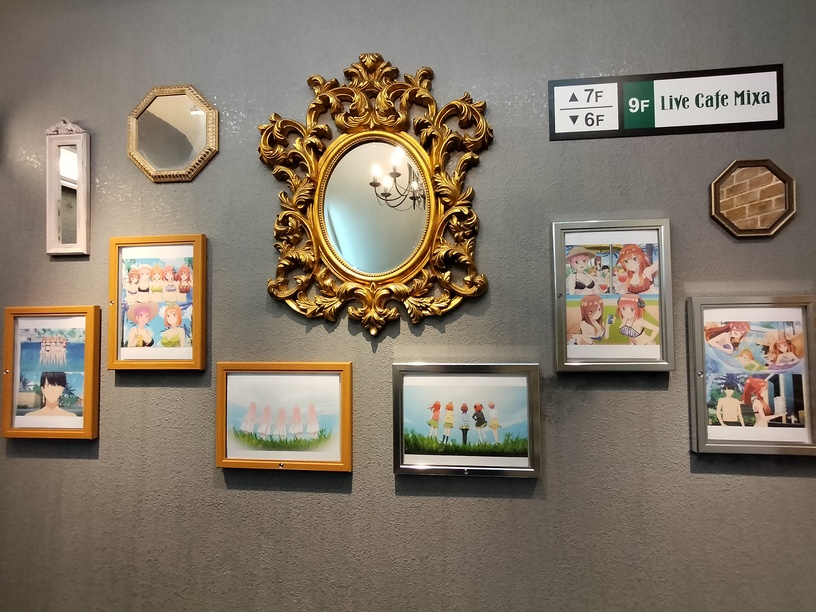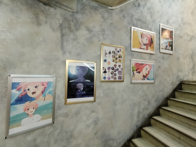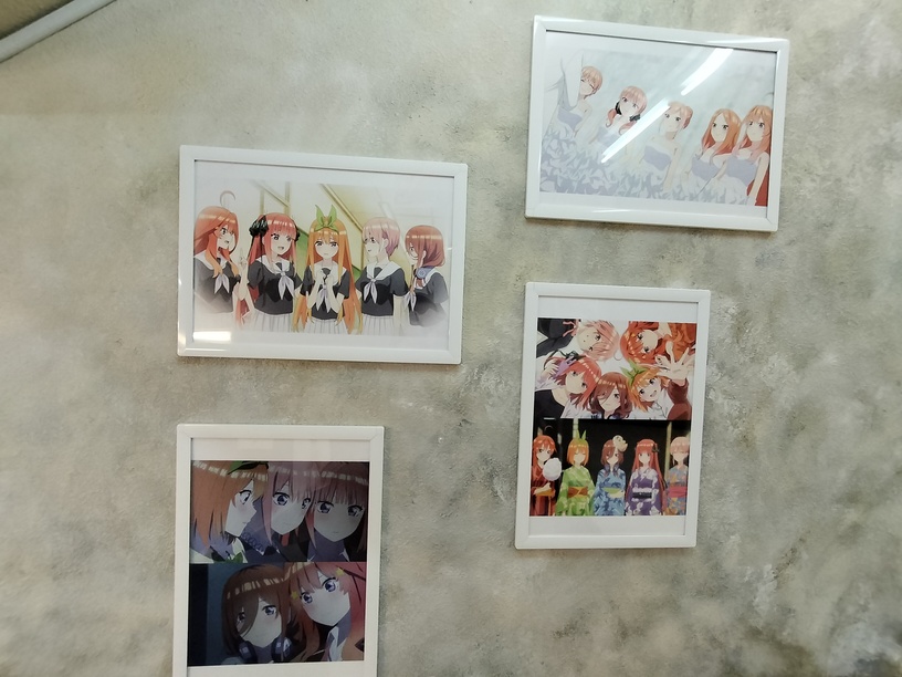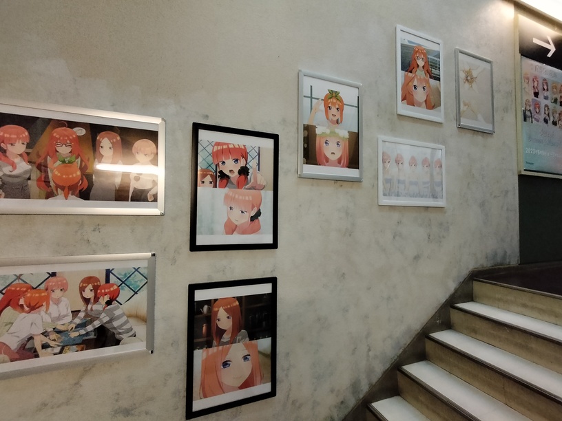 买了门票后来到了6楼,此处开始一直到咖啡的9楼的楼梯间挂满了五等分的花嫁主题的挂画。
