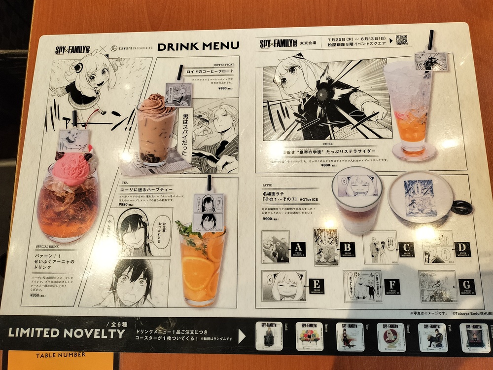 因为没抽到阿尼亚的杯垫,后来又追加了一杯阿尼亚的苏打,结果还是没有抽到呢!(笑)
