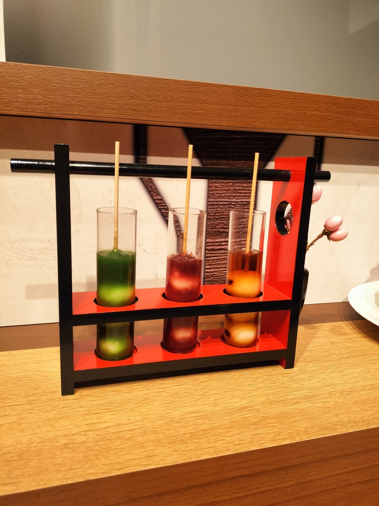 蓝色部分是果冻,但是以为其他甜品很甜,结果完全吃不出味道了。