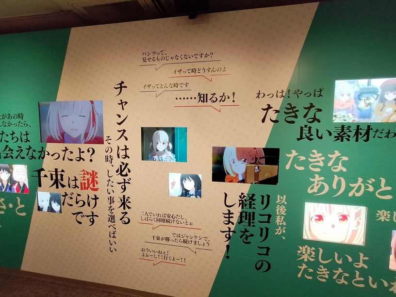 在博客中可能看不出来,其实《莉可丽丝》展的内容是隔壁《间谍过家家》展的二分之一。
