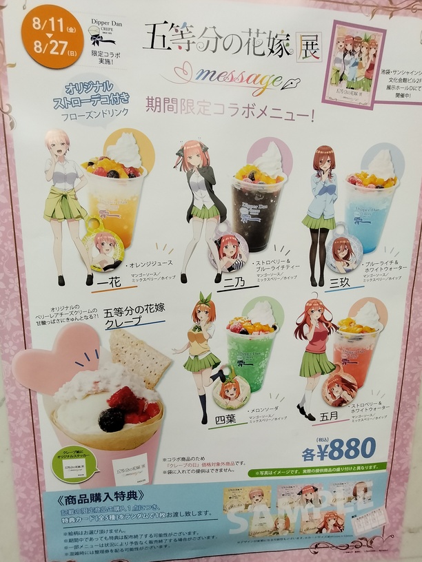 2023年8月16日,天气晴,趁着お盆休み的间隙,去了趟池袋看了《五等分的花嫁》展message。