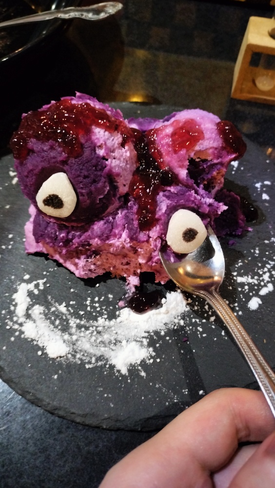 味道像是芋头类淀粉加葡萄味果酱的感觉。很独特,而且绝对量大管饱!真的很大一个!