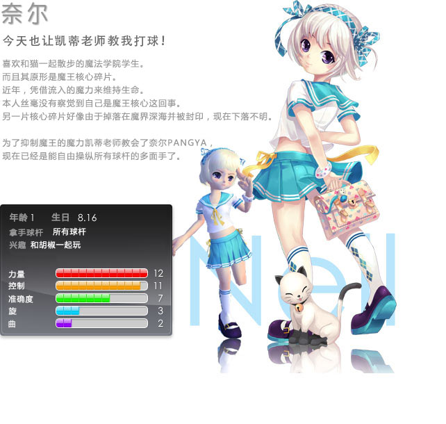 奈尔同时也是我比较精心培养的角色,各项属性值应该是我账号中最好的。不管是男孩子还是女孩子,可爱就是王道!