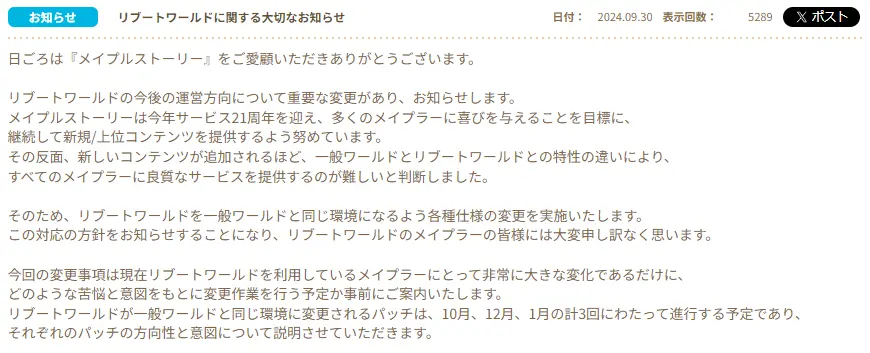 2024年8月4日,因《冒险岛online》日服R区玩家不满日服对R区的削弱修改,在《冒险岛online》日服新版本线下直播会的GM合照环节里纷纷表示讨要说法。然而这仅得到了“我们会珍惜每位玩家的反馈”之类的官方客套回复以及台下普区观众们的笑声,事后官方也将截图发布到了推特上,颇有一种官方在看R区玩家在无能狂怒的感觉。这让我这名在日服R区游玩了两年多的玩家感慨颇深,于是就想写点什么记录一下。